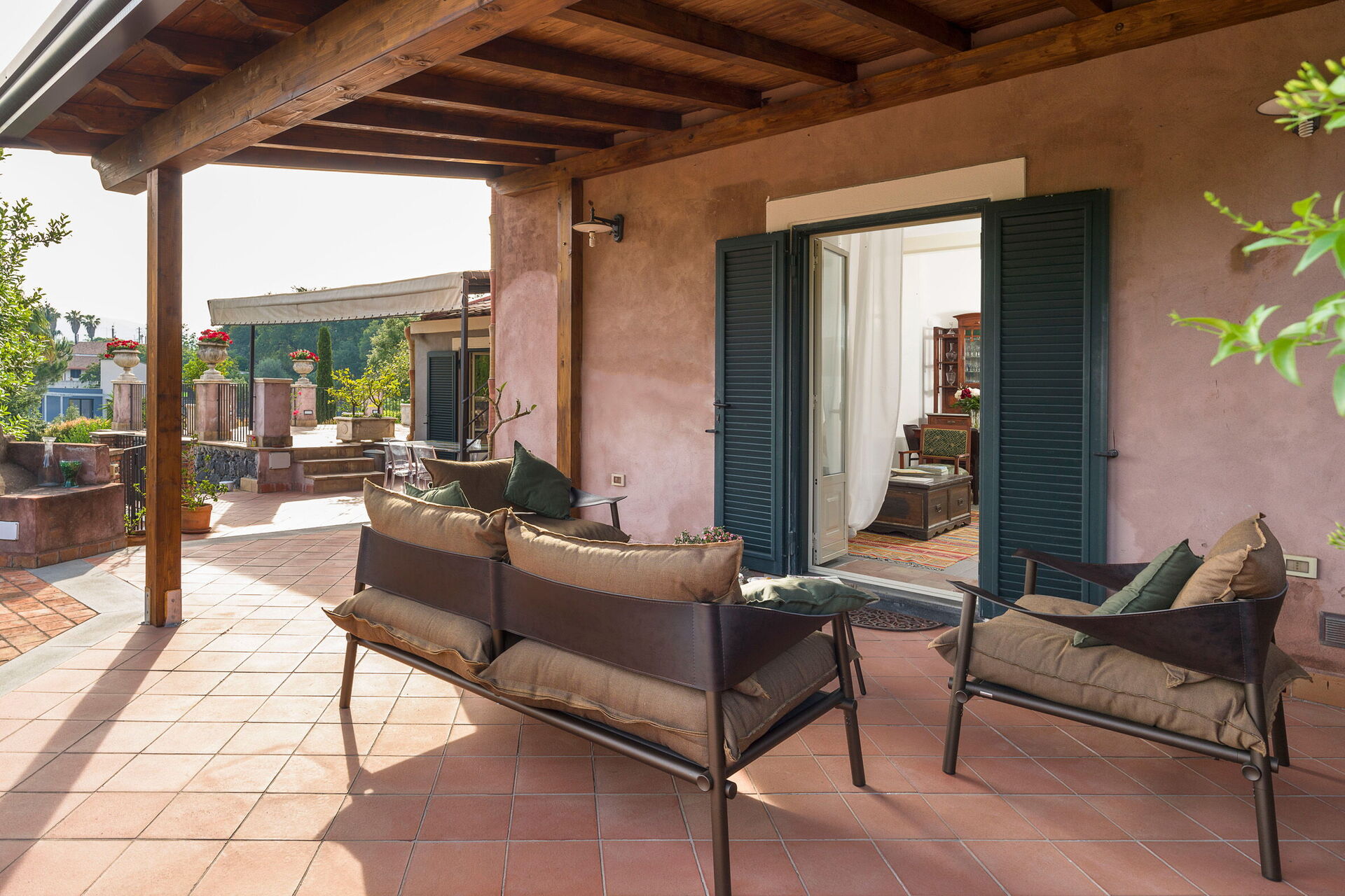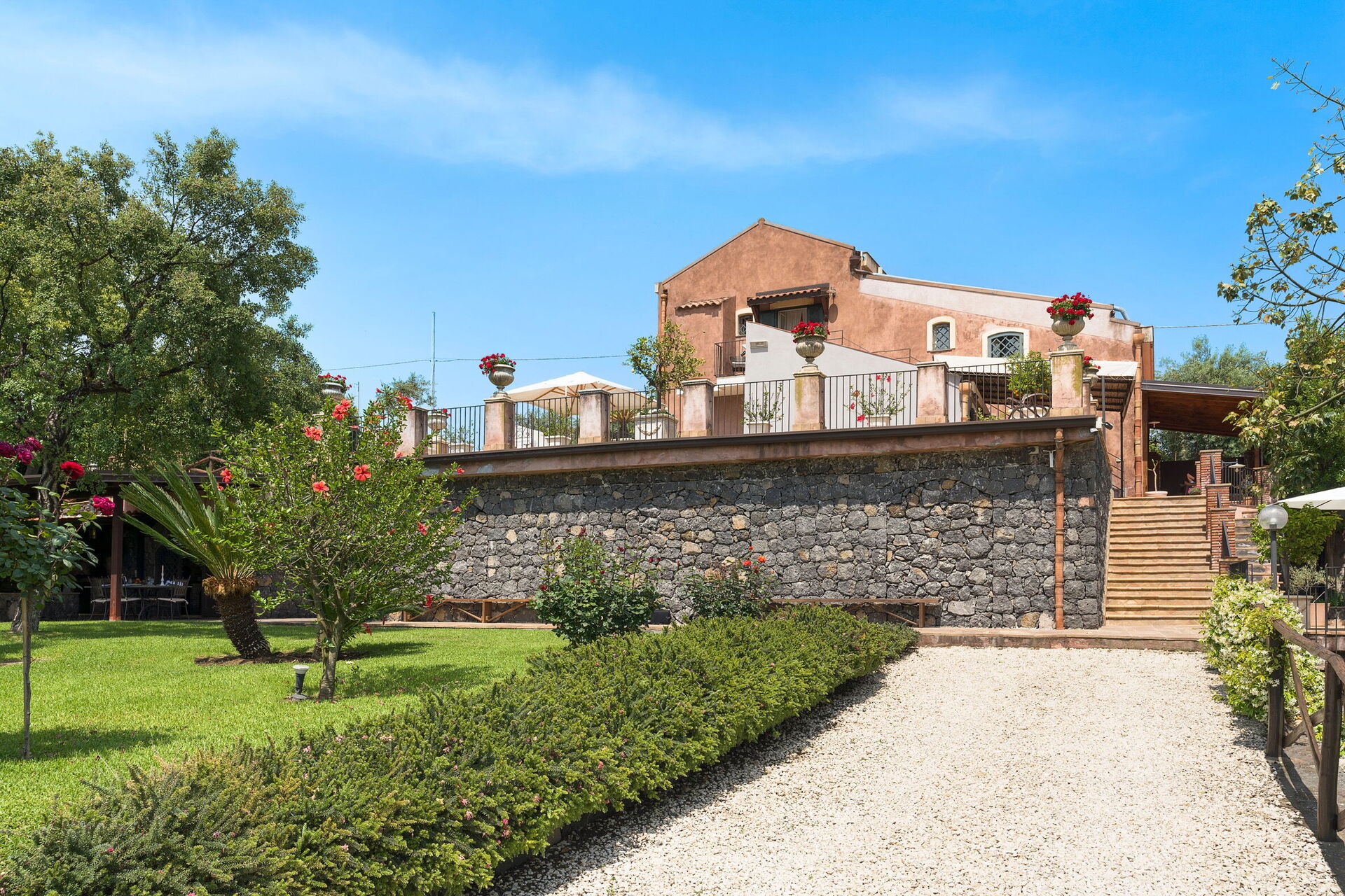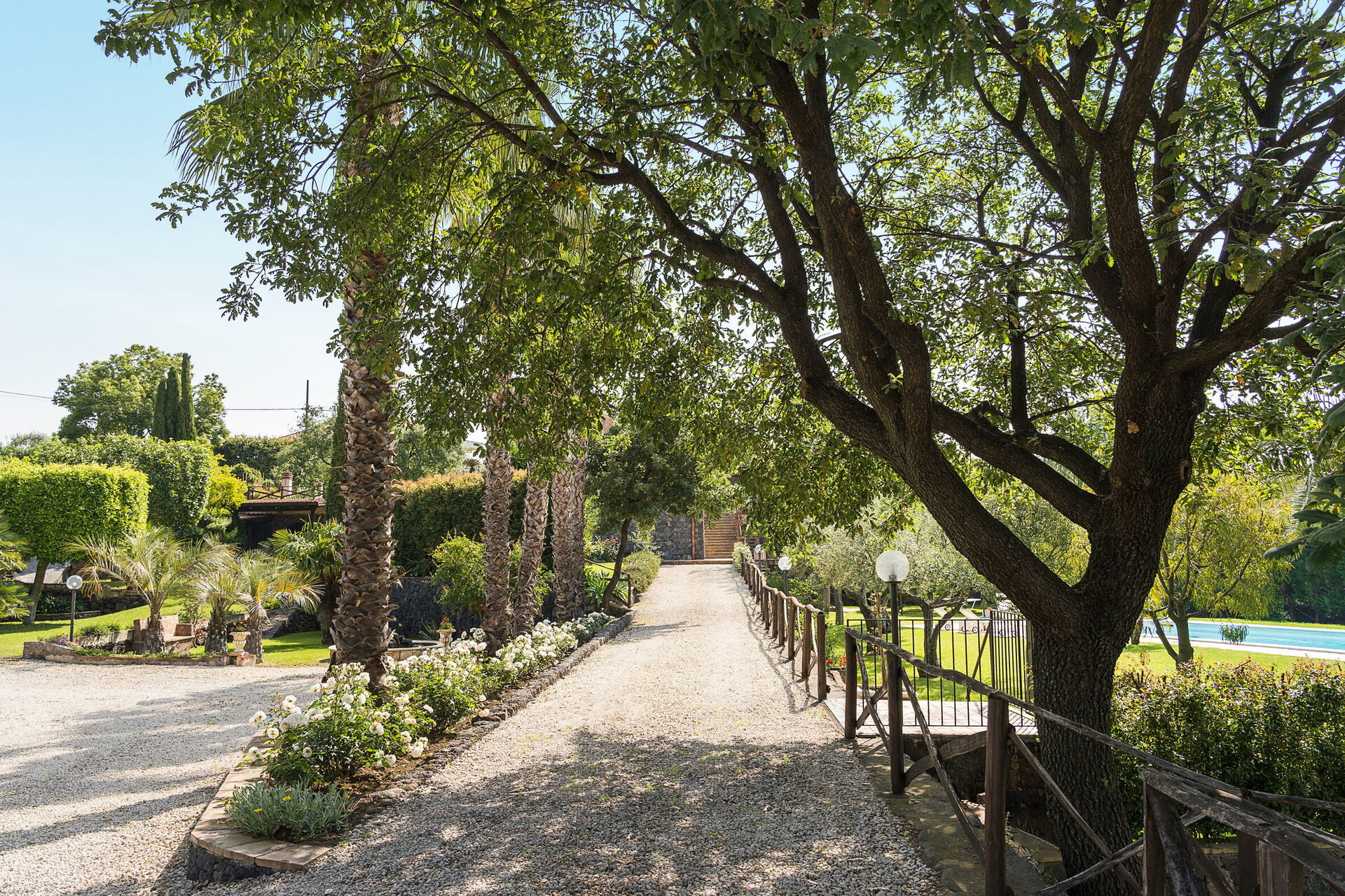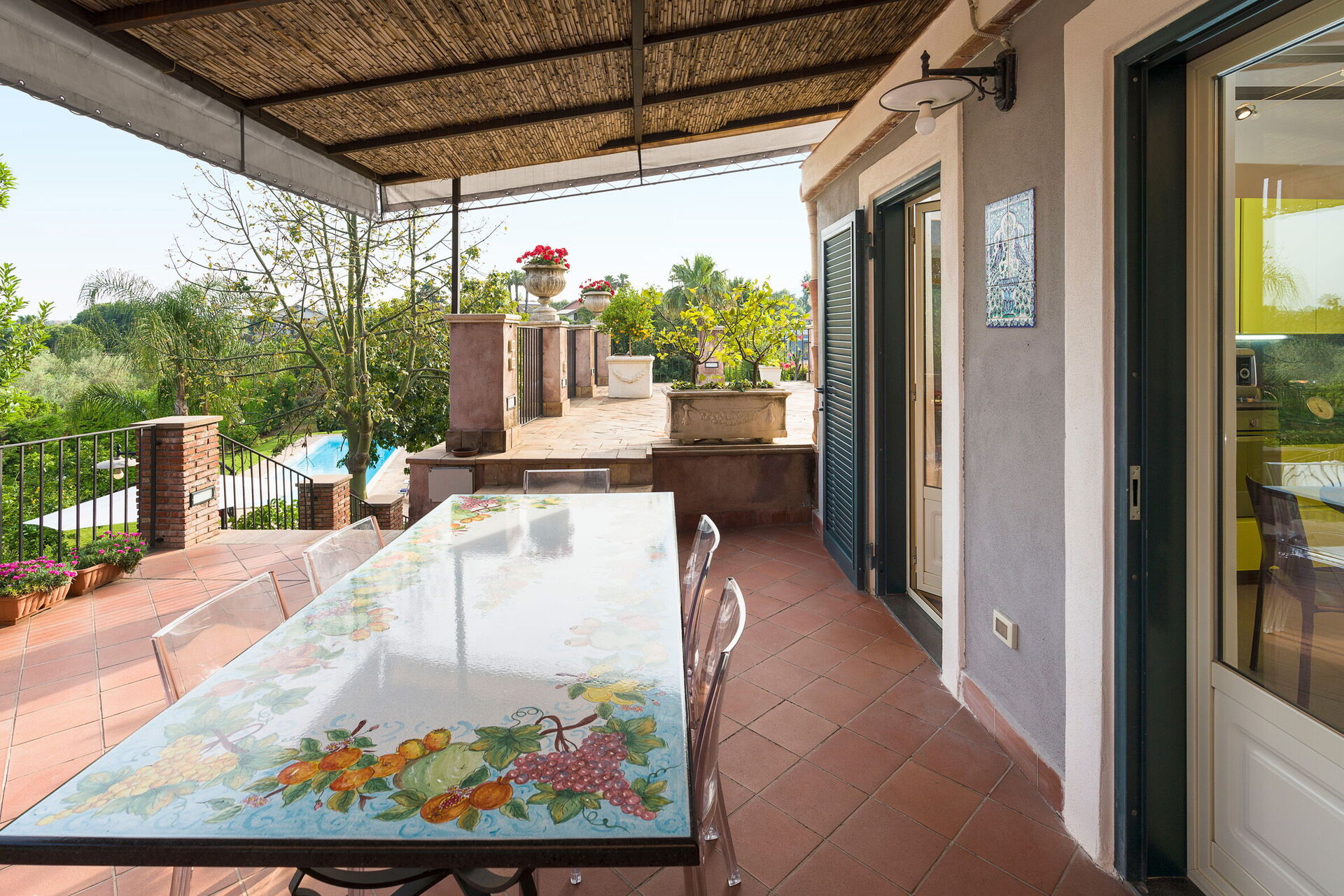 Oasi Verde is a splendid villa with salt swimming pool (5x18 m, depth 1.00-2.00 m) located near Acireale, a few kilometers from Catania in eastern Sicily. The house extends over 2 floors and is surrounded by a garden with lawn, large well-kept terraces equipped for relaxation, and a tavern with fireplace and barbecue, equipped for outdoor dining. With its recent renovation, the residence offers a combination of elegant interior spaces and large, well-kept outdoor areas. Ideal location to easily reach various locations on the Ionian Riviera, including Acireale, Aci Trezza, Aci Castello, Etna and other characteristic foothill villages. The famous tourist resorts of Giardini Naxos, Taormina, Catania and Syracuse are a short distance away.