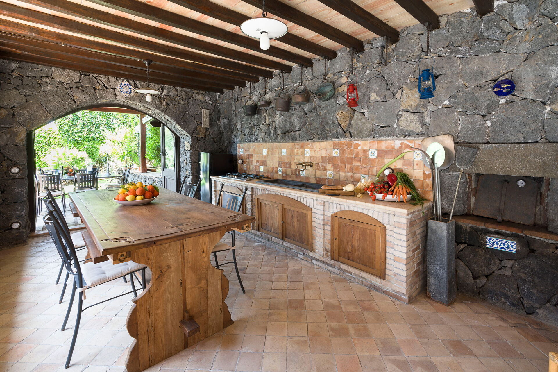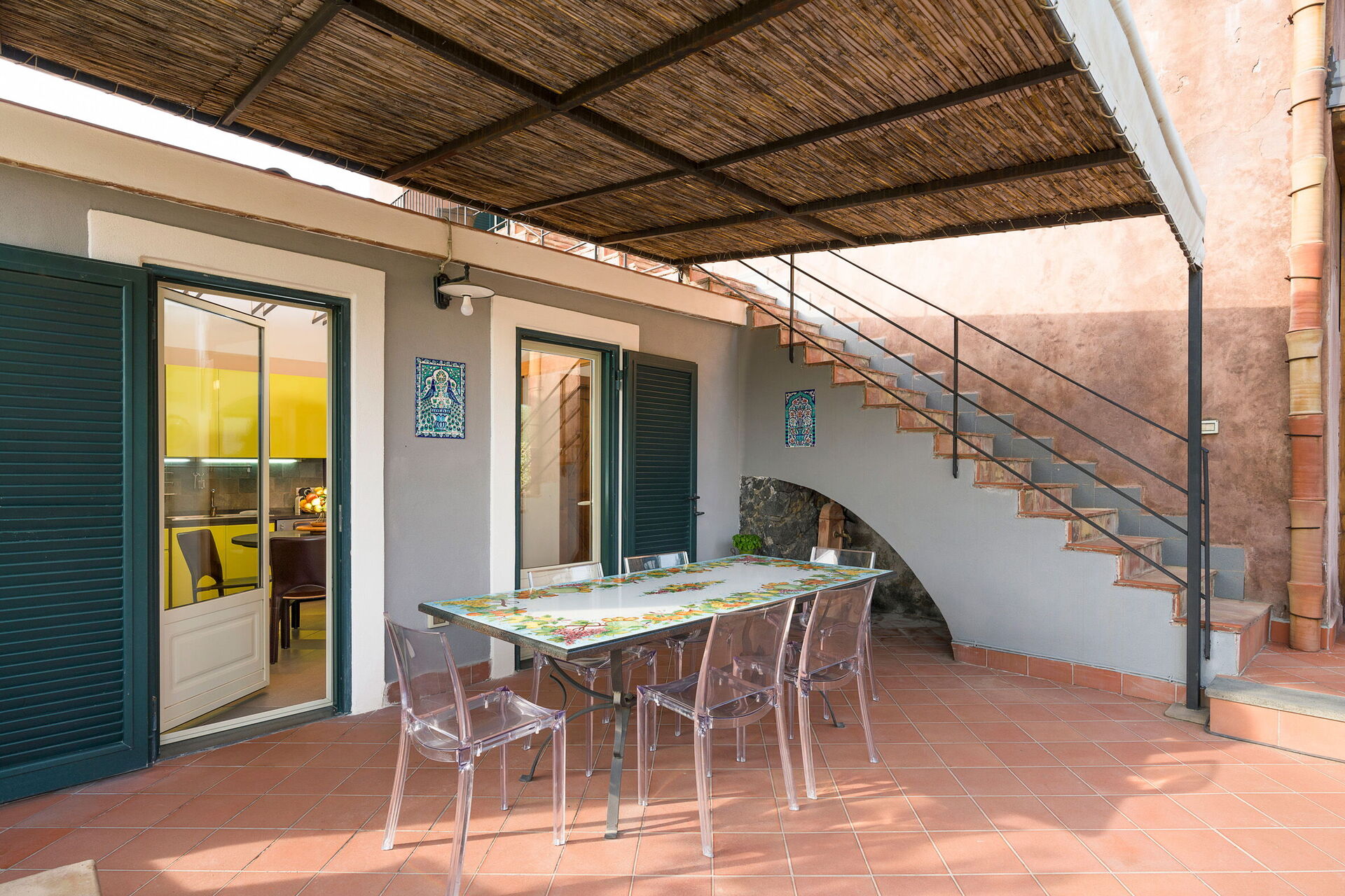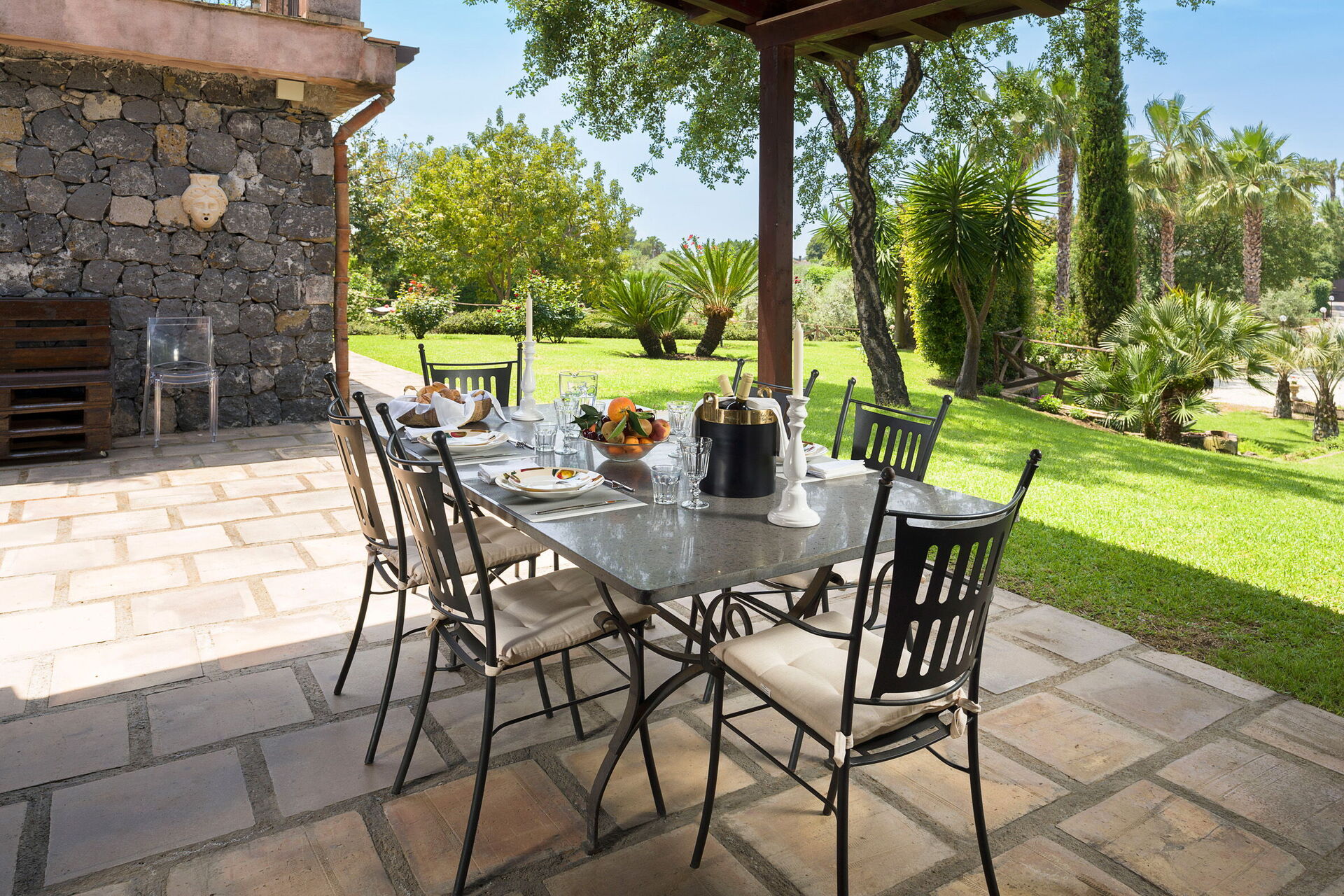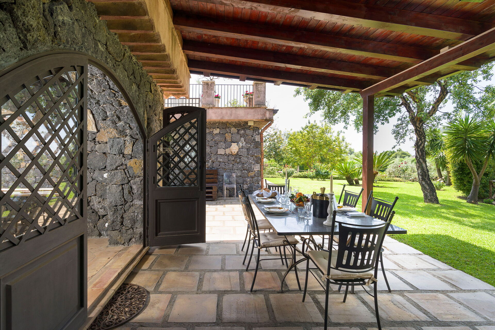 Oasi Verde is a splendid villa with salt swimming pool (5x18 m, depth 1.00-2.00 m) located near Acireale, a few kilometers from Catania in eastern Sicily. The house extends over 2 floors and is surrounded by a garden with lawn, large well-kept terraces equipped for relaxation, and a tavern with fireplace and barbecue, equipped for outdoor dining. With its recent renovation, the residence offers a combination of elegant interior spaces and large, well-kept outdoor areas. Ideal location to easily reach various locations on the Ionian Riviera, including Acireale, Aci Trezza, Aci Castello, Etna and other characteristic foothill villages. The famous tourist resorts of Giardini Naxos, Taormina, Catania and Syracuse are a short distance away.