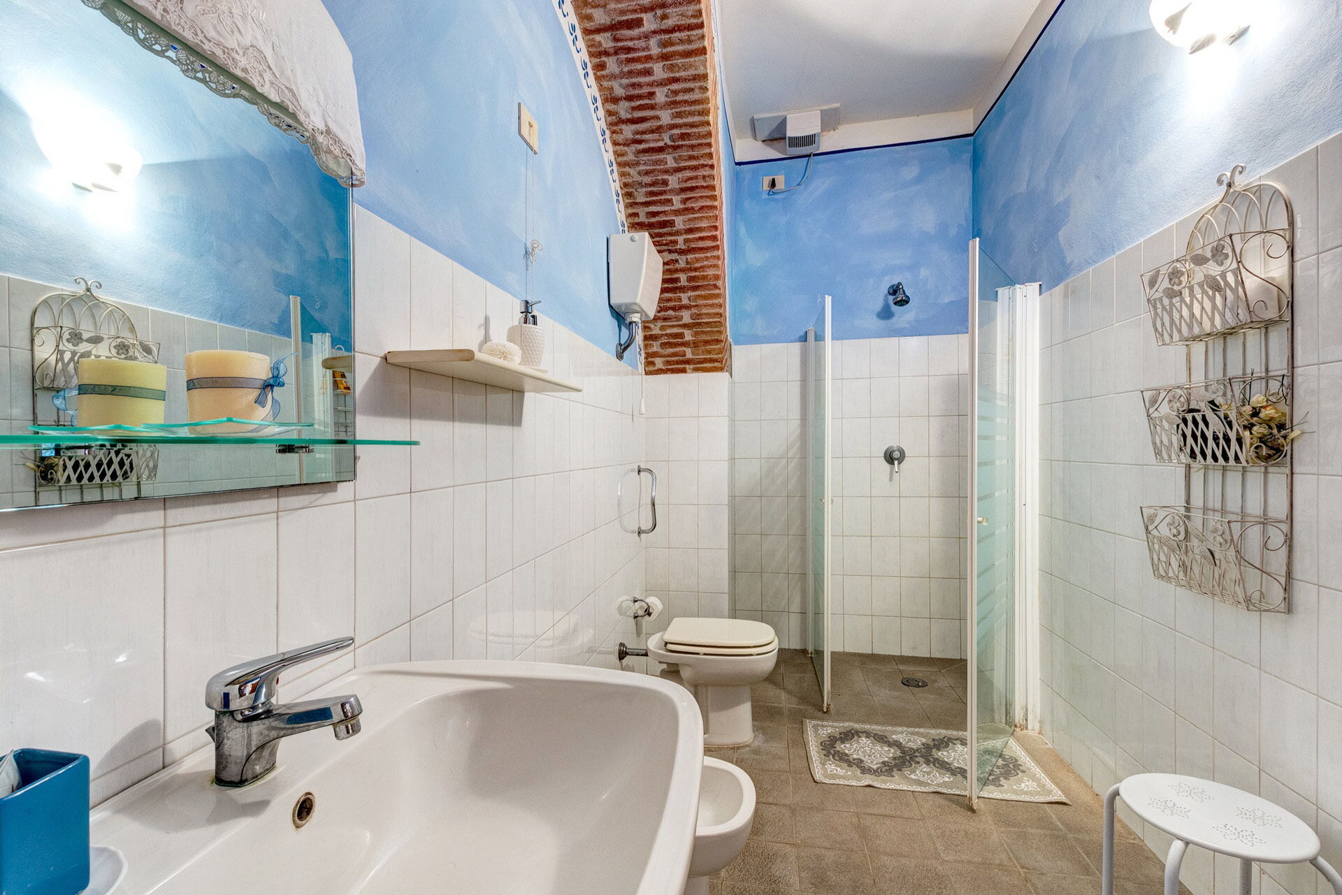 A second apartment complete with a fully equipped kitchen and characterized by a brick wall, has two large double bedrooms, one of which with an additional single bed. The apartment has a small internal patio to enjoy moments of relaxation perhaps reading a good book. There is a bathroom with shower.