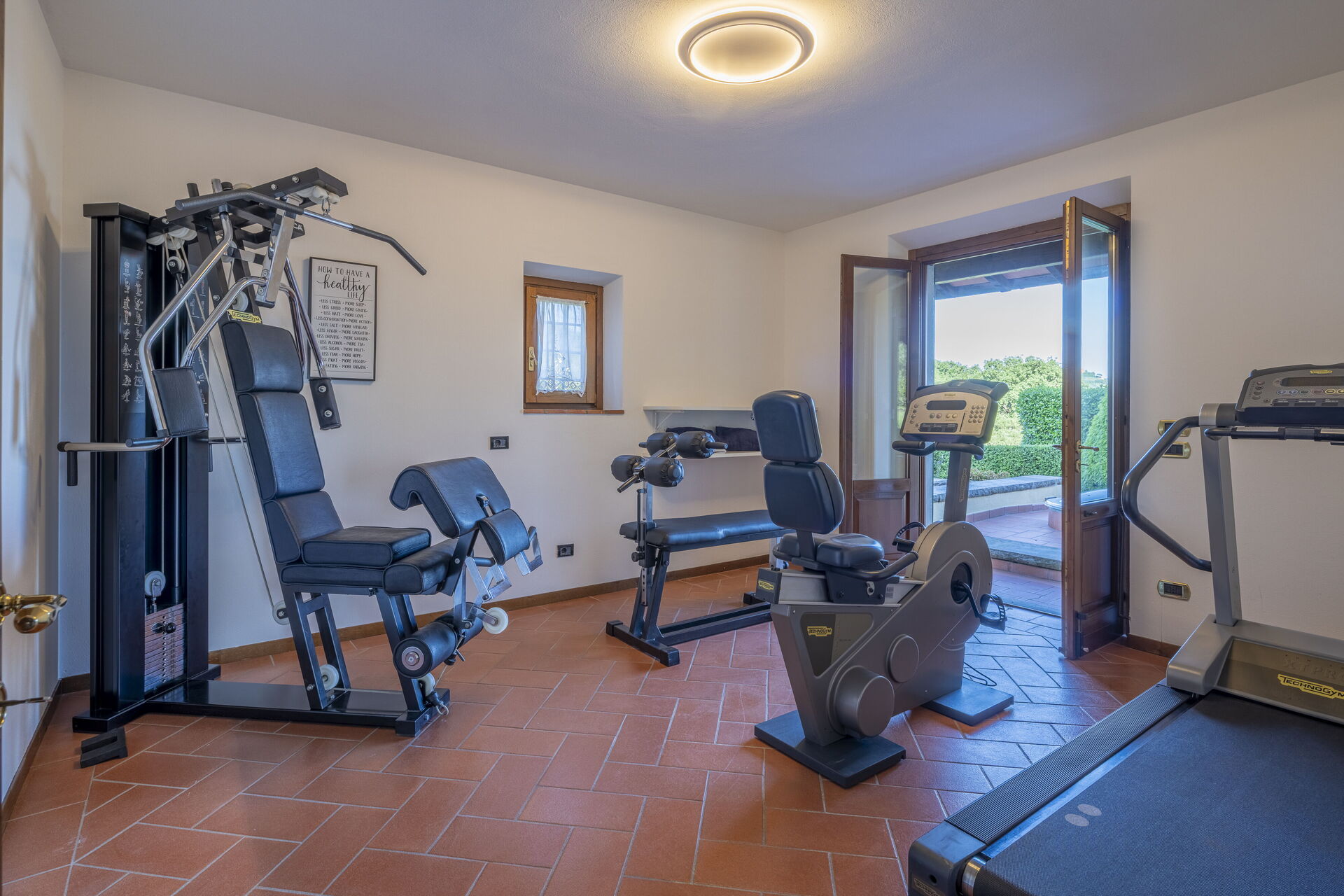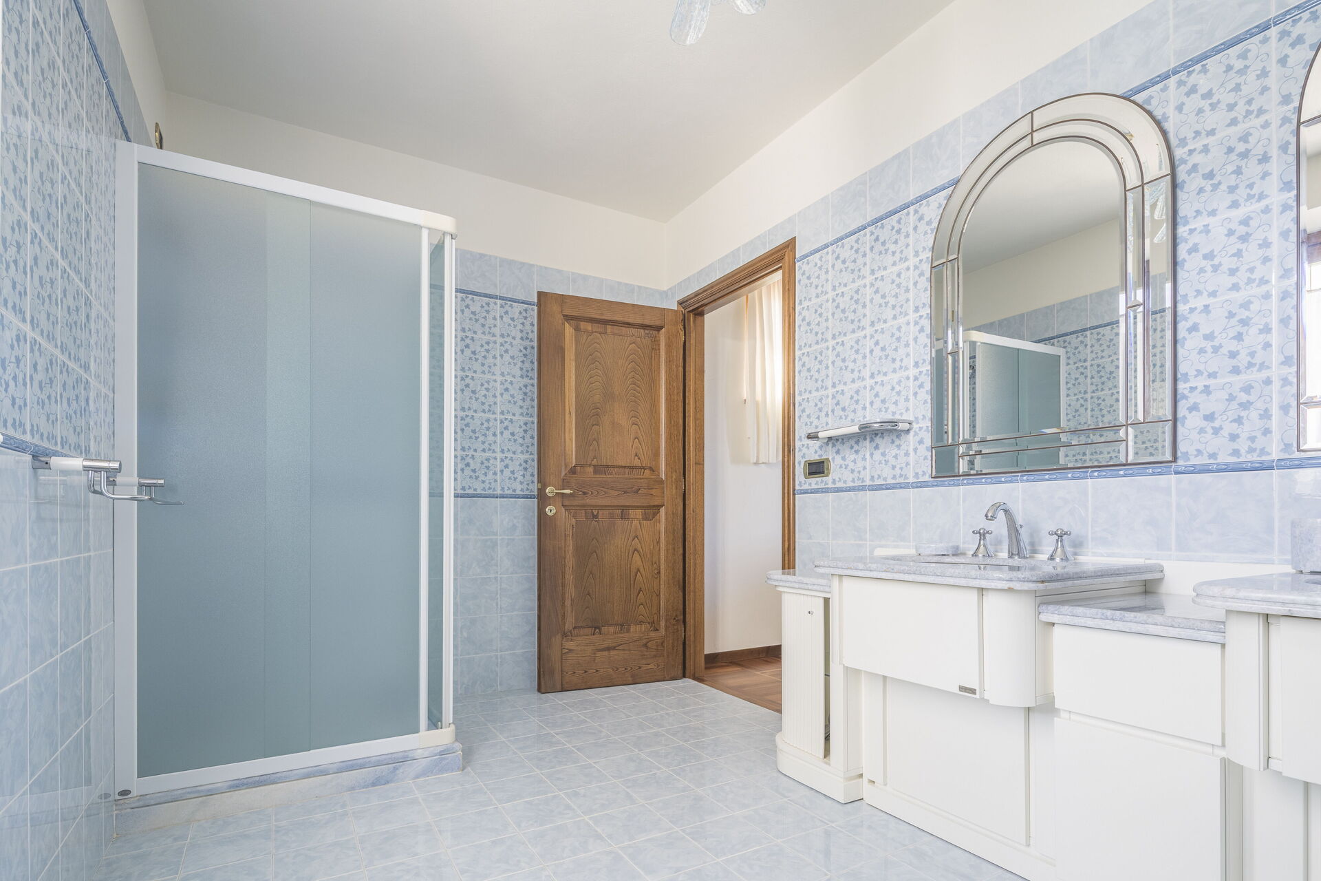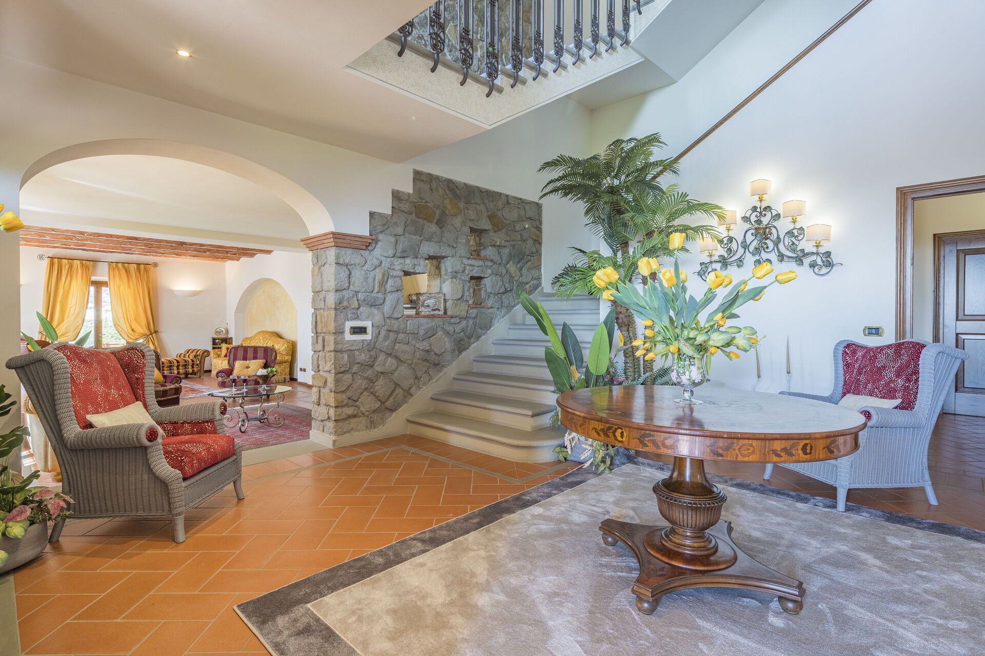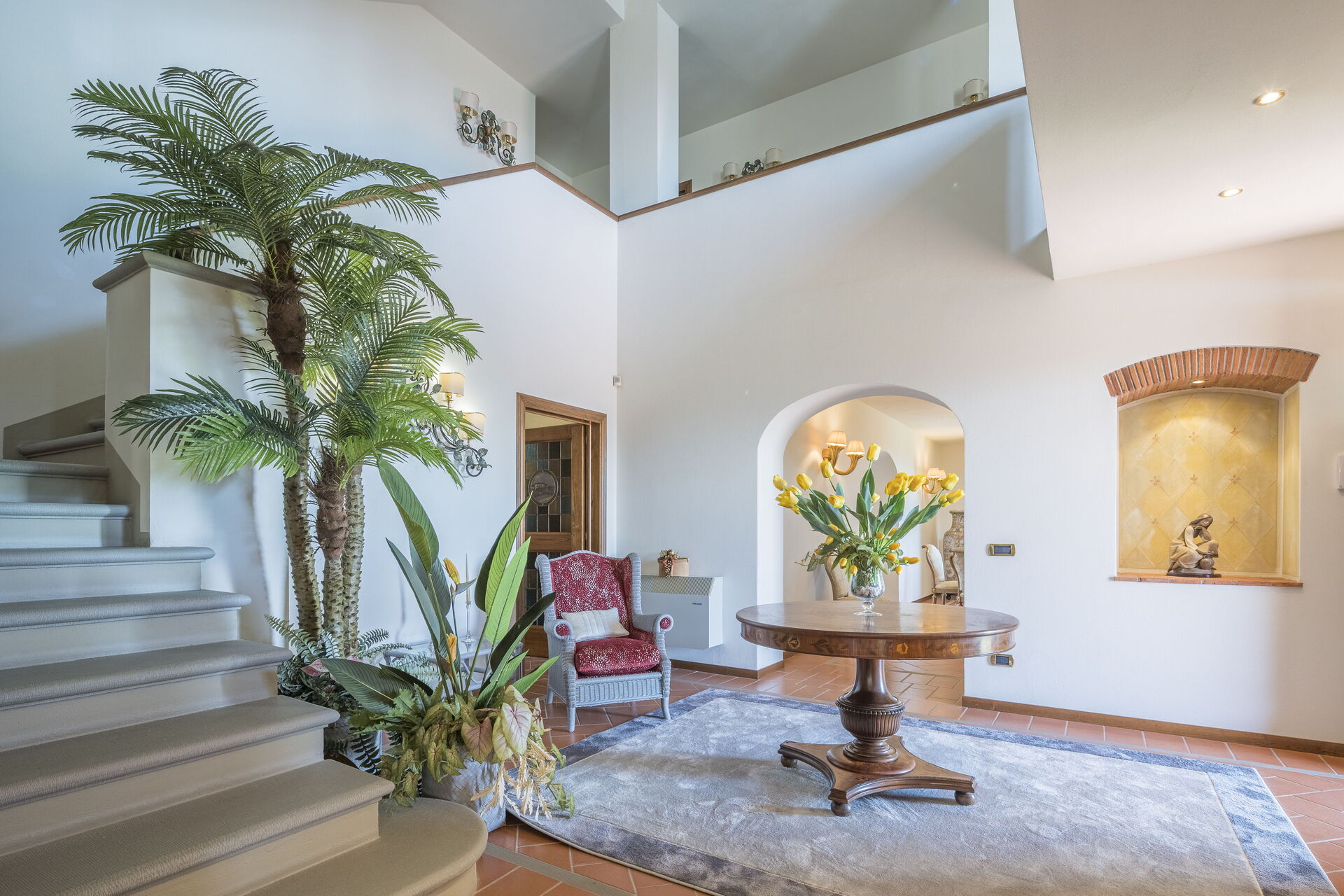 A splendid detached villa, a true oasis of luxury and well-being, designed to offer the utmost comfort and privacy. Situated in an exclusive location, the villa has a large private swimming pool, ideal for cooling off and relaxing on hot summer days. There is also a fully equipped wellness area that welcomes guests with a hot tub, a relaxing sauna and a fully equipped fitness room for home workouts. Perfect for family holidays or for hosting groups of friends who want to enjoy a relaxing stay in a peaceful environment. The villa is spread over three levels. An olive grove frames the comfortable outdoor spaces.
