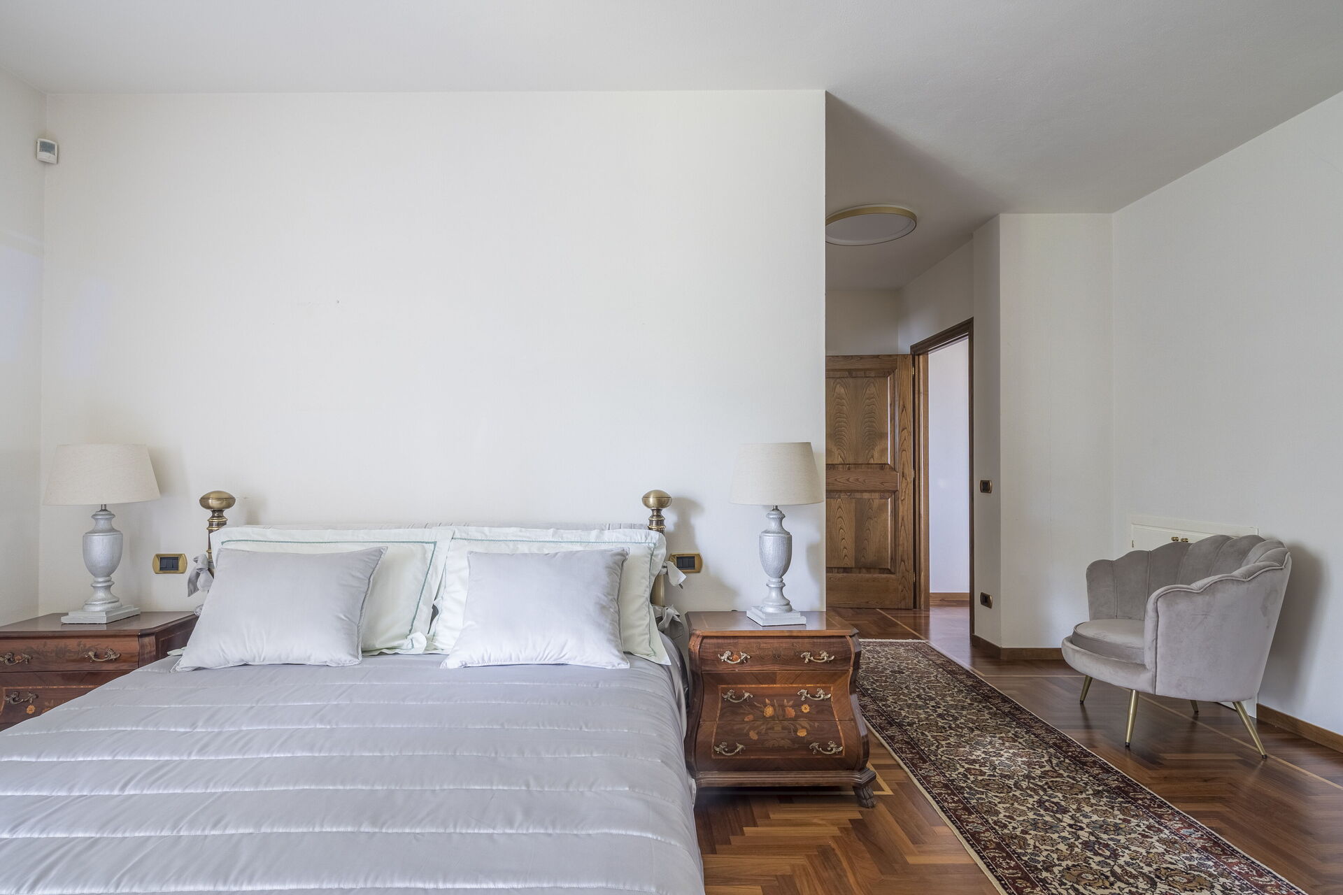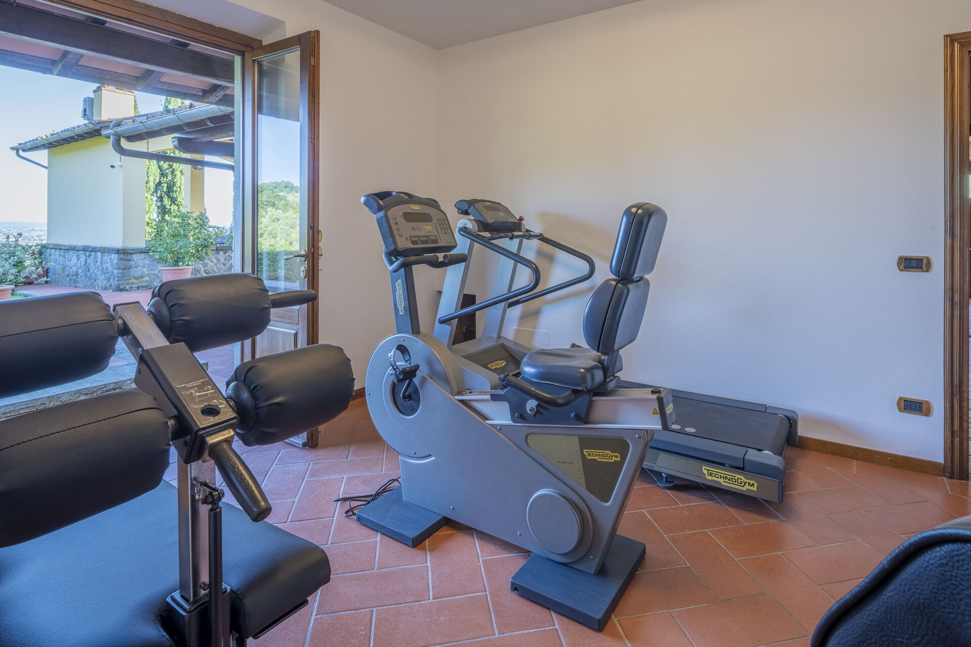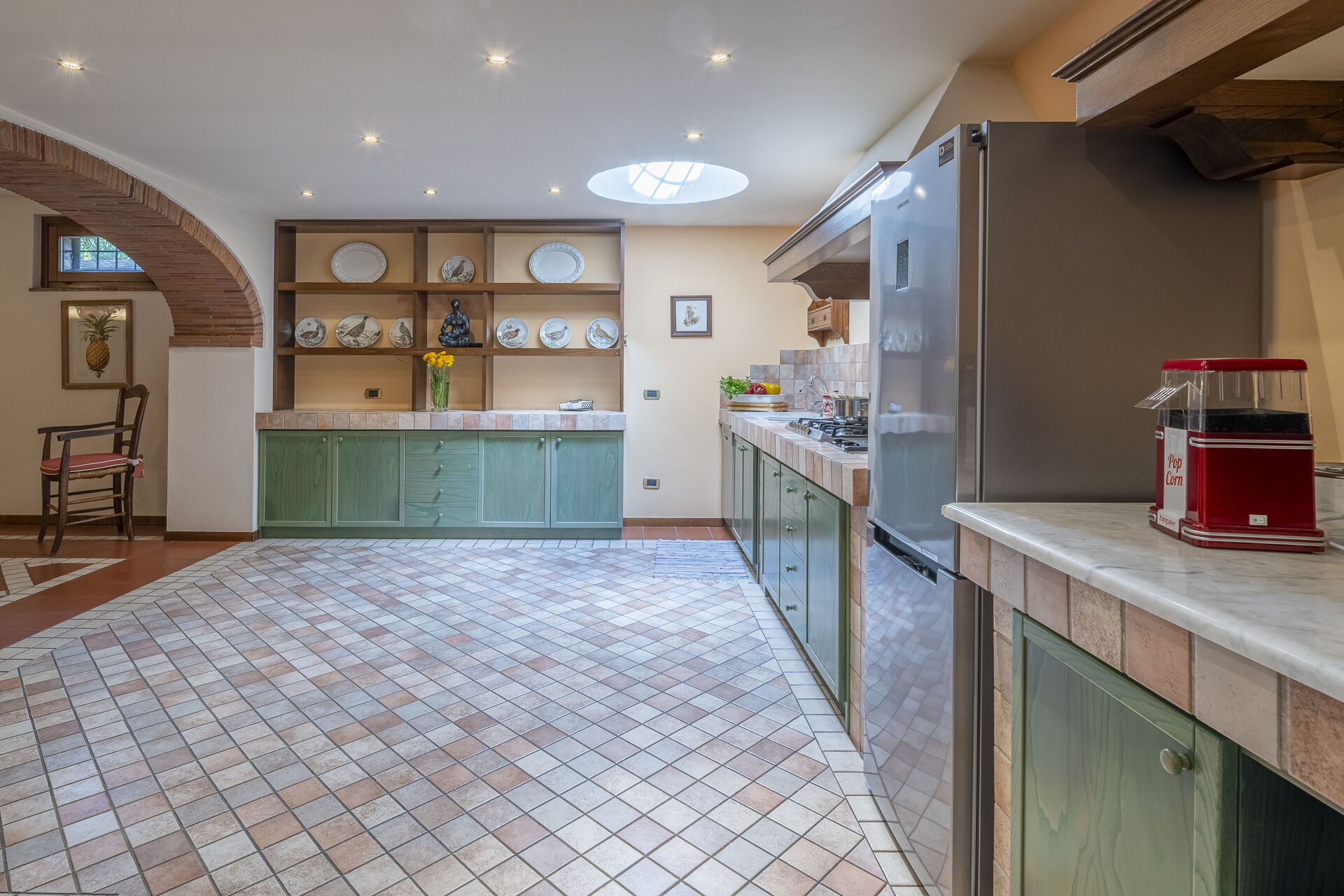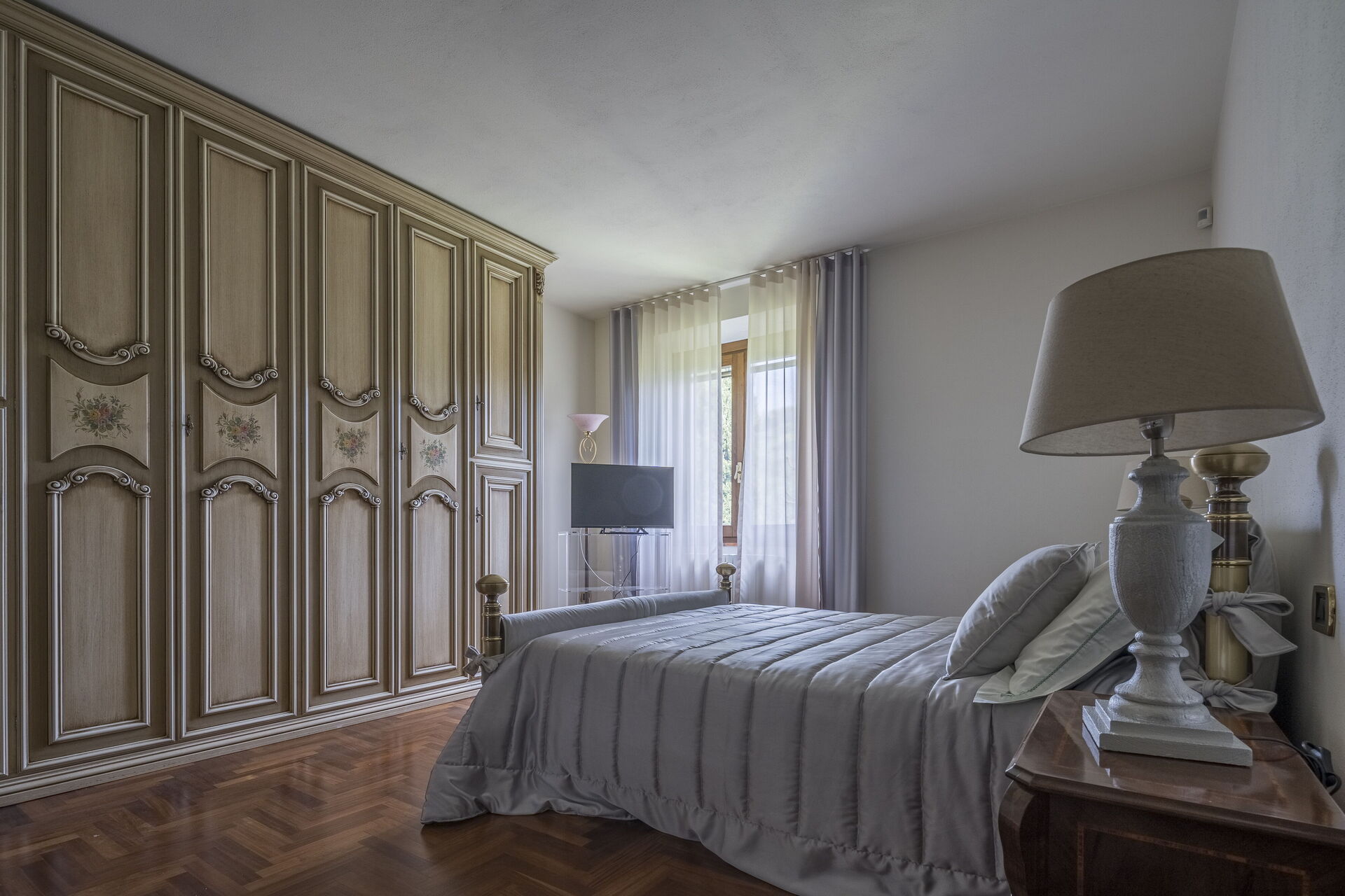 A splendid detached villa, a true oasis of luxury and well-being, designed to offer the utmost comfort and privacy. Situated in an exclusive location, the villa has a large private swimming pool, ideal for cooling off and relaxing on hot summer days. There is also a fully equipped wellness area that welcomes guests with a hot tub, a relaxing sauna and a fully equipped fitness room for home workouts. Perfect for family holidays or for hosting groups of friends who want to enjoy a relaxing stay in a peaceful environment. The villa is spread over three levels. An olive grove frames the comfortable outdoor spaces.