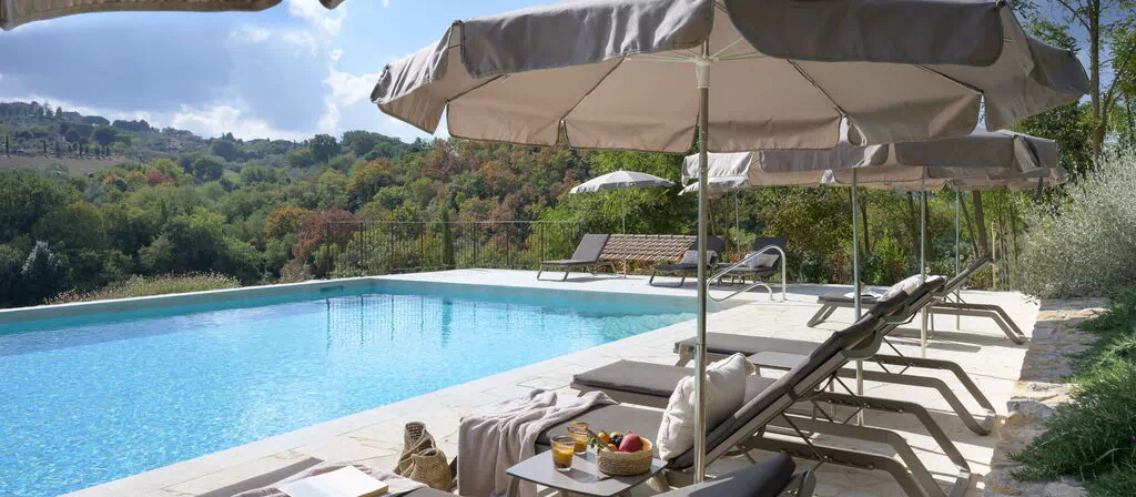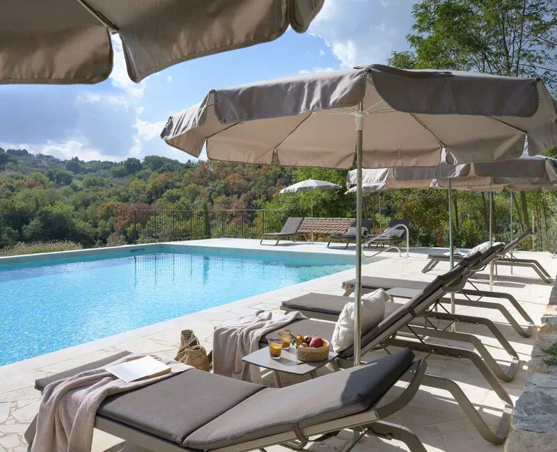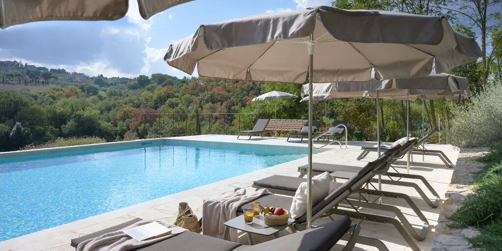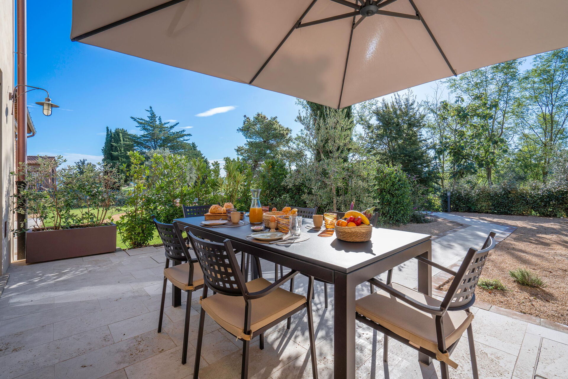 Spereto Nocellara in Montaione is a flat with an independent entrance obtained from a careful restoration of a farmhouse. Nocellara has a private equipped outdoor area. The swimming pool, (18x8 depth 1,40 ) in a panoramic position overlooking the valley and the historic village of Montaione, is shared, open all year round because it is heated. The pool is surrounded by a refined sun terrace with outdoor furniture and a sun umbrella for each unit. Toilets, outdoor shower and outdoor kitchen complete the pool area. Uncovered parking inside the property. Cars are not allowed inside Borgo di Spereto.