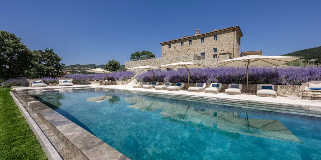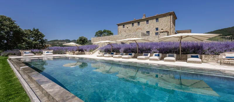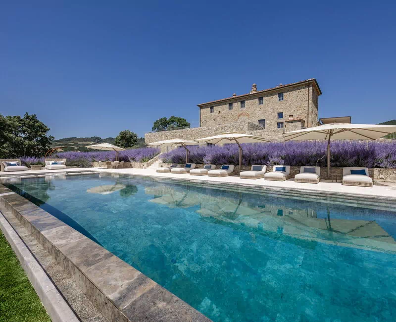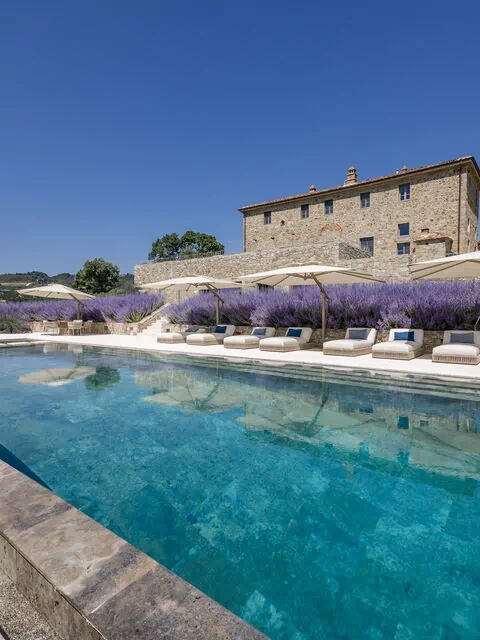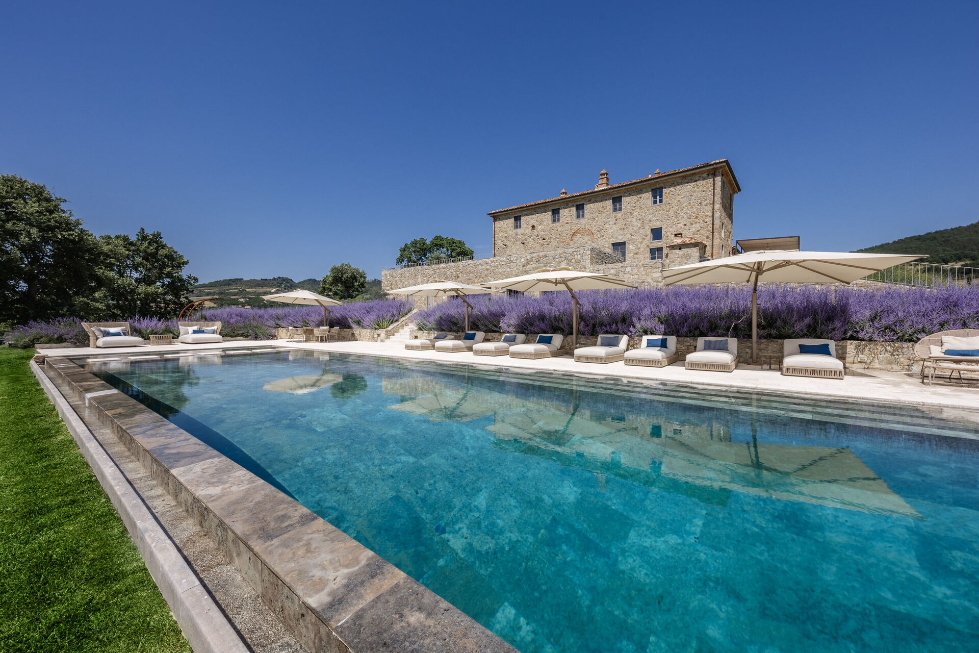 In the heart of Tuscany and the Chianti area we find this beautiful farmhouse perfectly integrated in the hills and among the vineyards. It is the ideal location for a holiday in luxury or for an event to be remembered with loved ones for a lifetime.