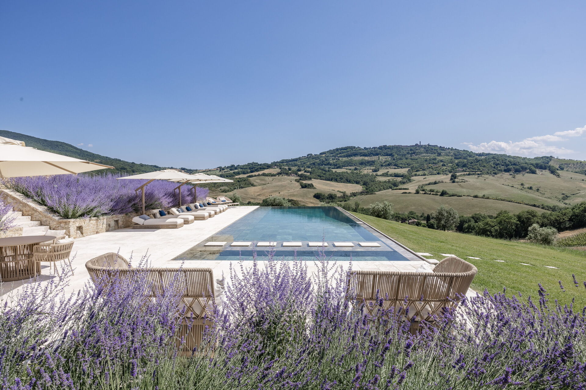 The property consists of a main villa, an elegant family depandance and a barn with a large hall for events, all immersed in the vast gardens with well-kept lawns, where there is a large infinity pool (22metres) with massage jets at its ends perfect for diving in and enjoying on the sunbeds the beautiful view of the surrounding landscape of vineyards and olive trees.