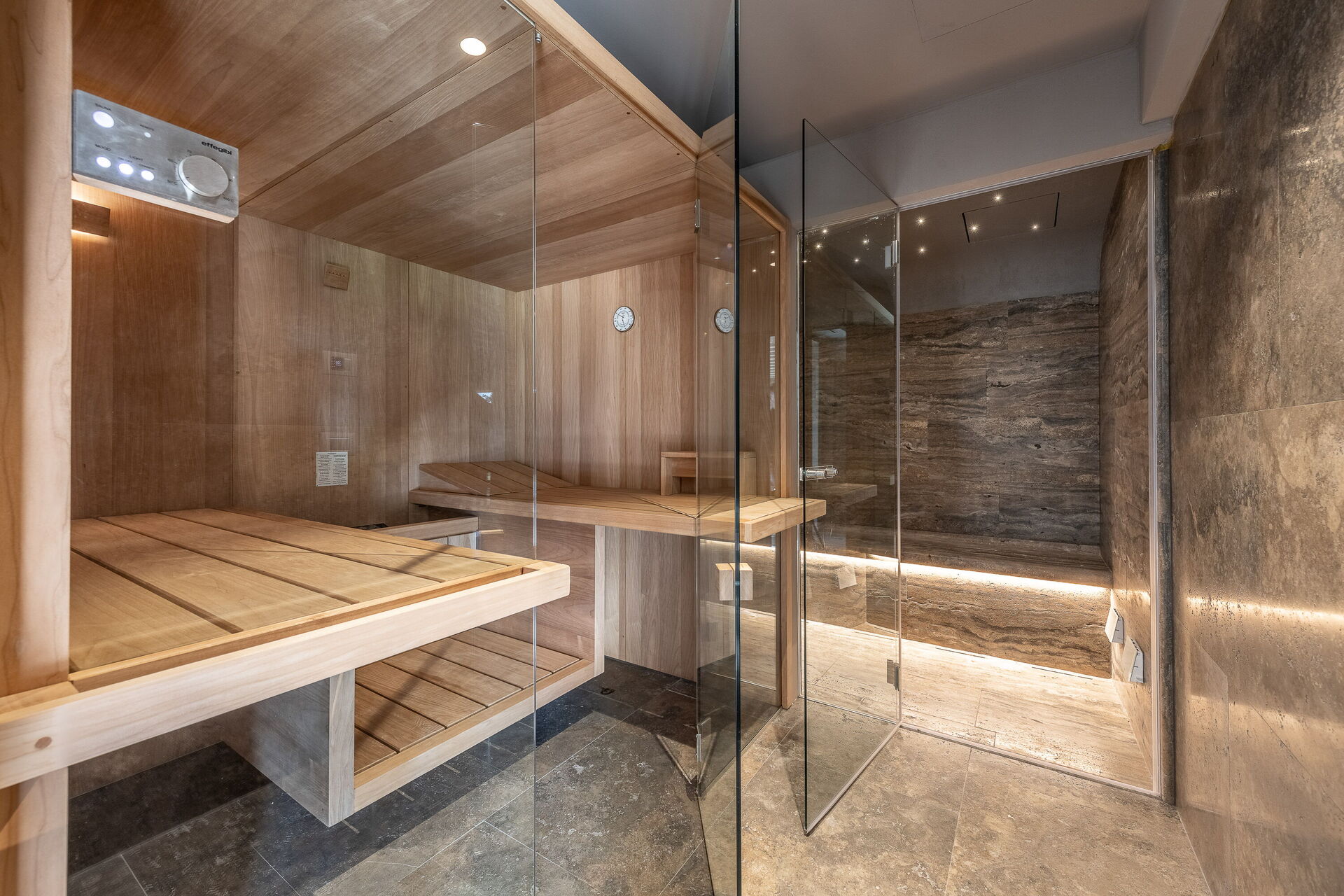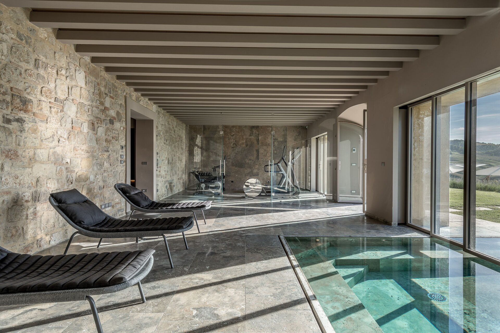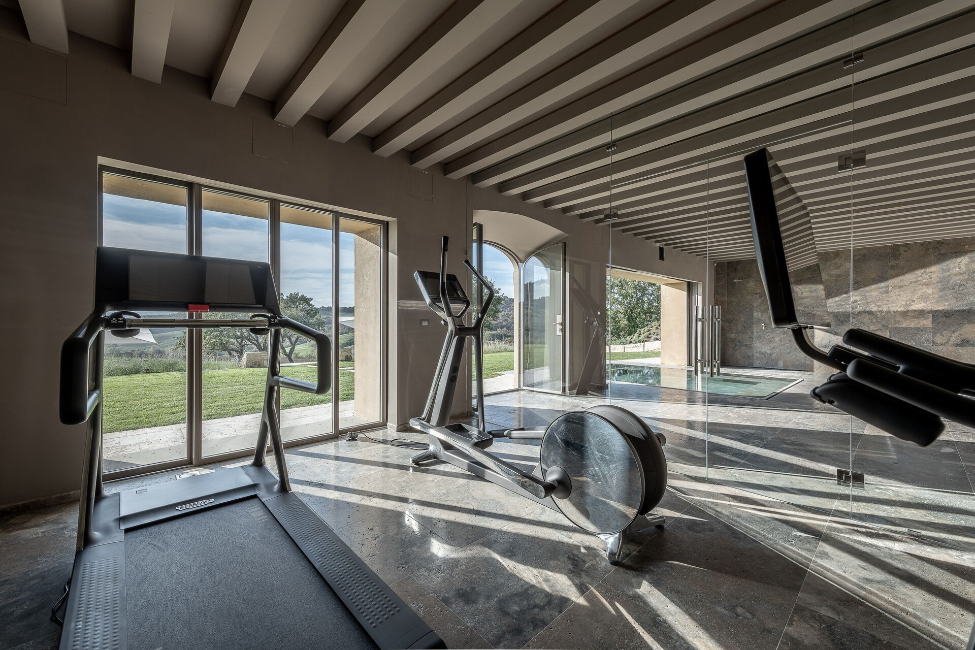 Inside the villa we find the indoor spa where we can spend moments of absolute relaxation, where we find a gym with top-of-the-range equipment, a sauna, hammam and indoor/outdoor heated pool while admiring the view of the spectacular panorama outside.