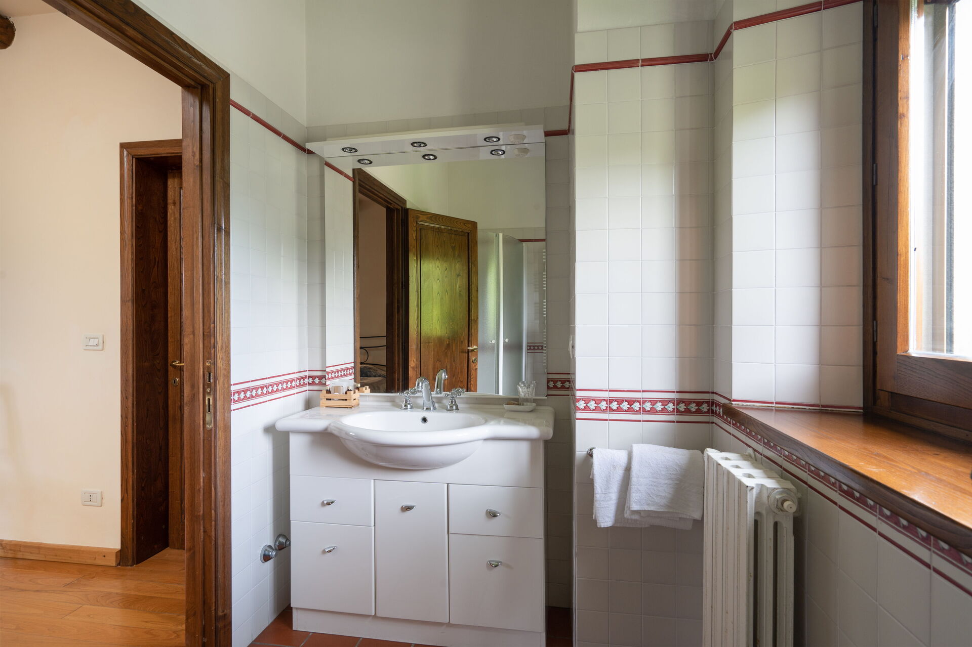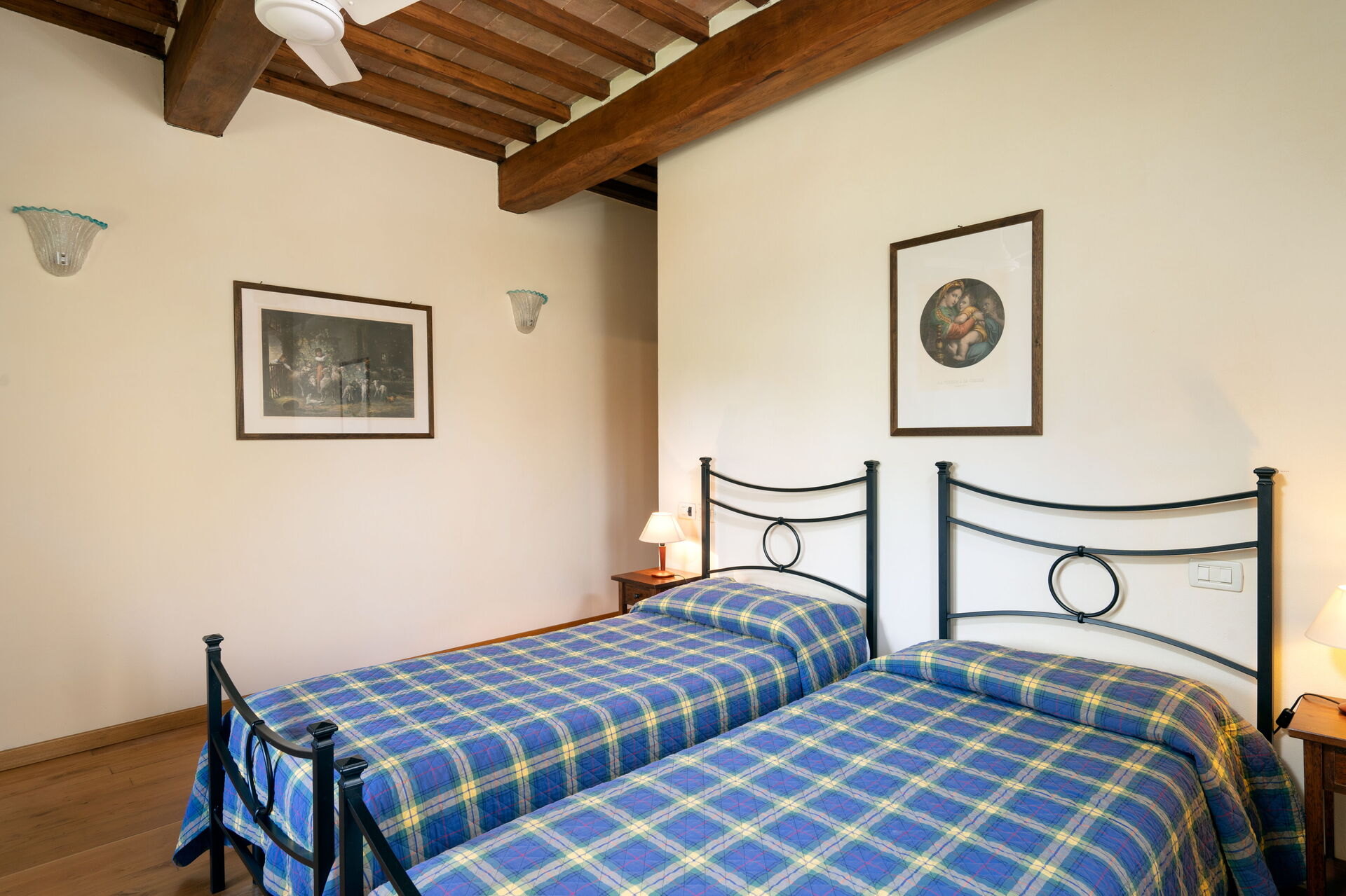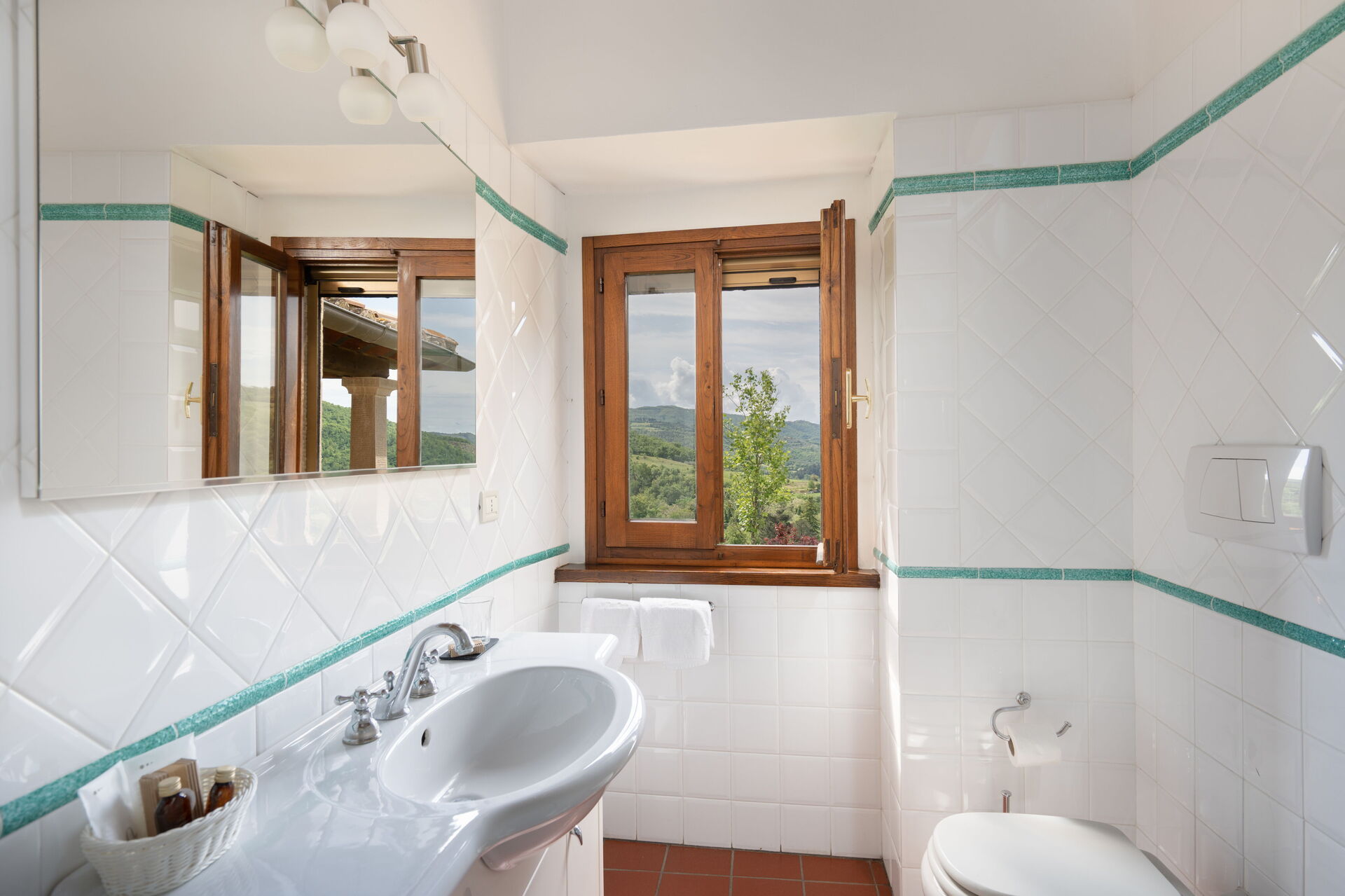 The property is located only 15 minutes by car from the ancient city of Arezzo, on the edge of the Casentino Forests and the Verna Park. A tennis court, shared with guests Villa Olivi and Vogognano, is also within walking distance (about 200 m). The covered terrace with pizza oven, the panoramic veranda and the terrace on the first floor allow guests to admire the splendid panorama and spend pleasant moments outdoors. The location is so charming that many couples choose it to celebrate their unforgettable wedding in Tuscany! On request, the owner organises dinners, lunches and cooking classes (to be paid for locally). The windows are fitted with mosquito nets. Two baby cots are also available on request. Excursion tips: 4 km Subbiano, 35 km Caprese Michelangelo, 48 km Cortona, 70 km Florence, 15 km golf course.