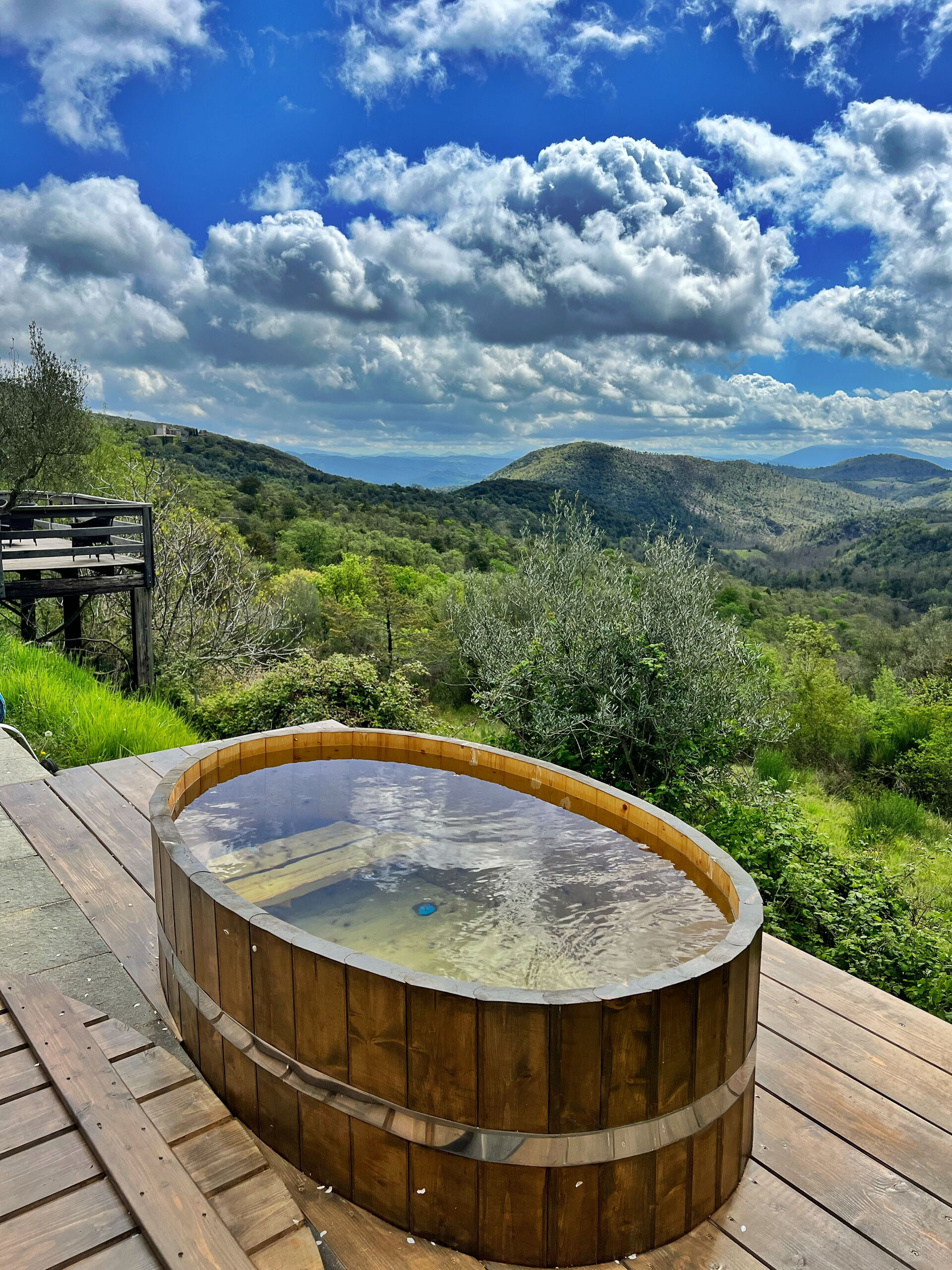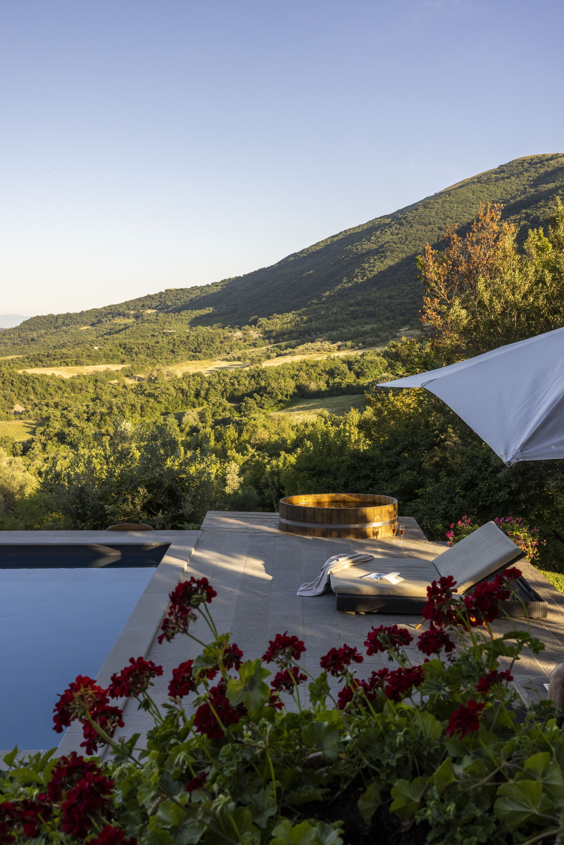 The farmhouse overlooks an elegant garden with a panoramic terrace that offers breathtaking views of the surrounding countryside. Among the numerous amenities available, there is a heated private pool (11 x 5 m), ensuring maximum enjoyment even on cooler days. Alongside the pool, a delightful heated outdoor tub adds a touch of luxury and wellness. Around the pool, you will find loungers, deck chairs, and an umbrella.