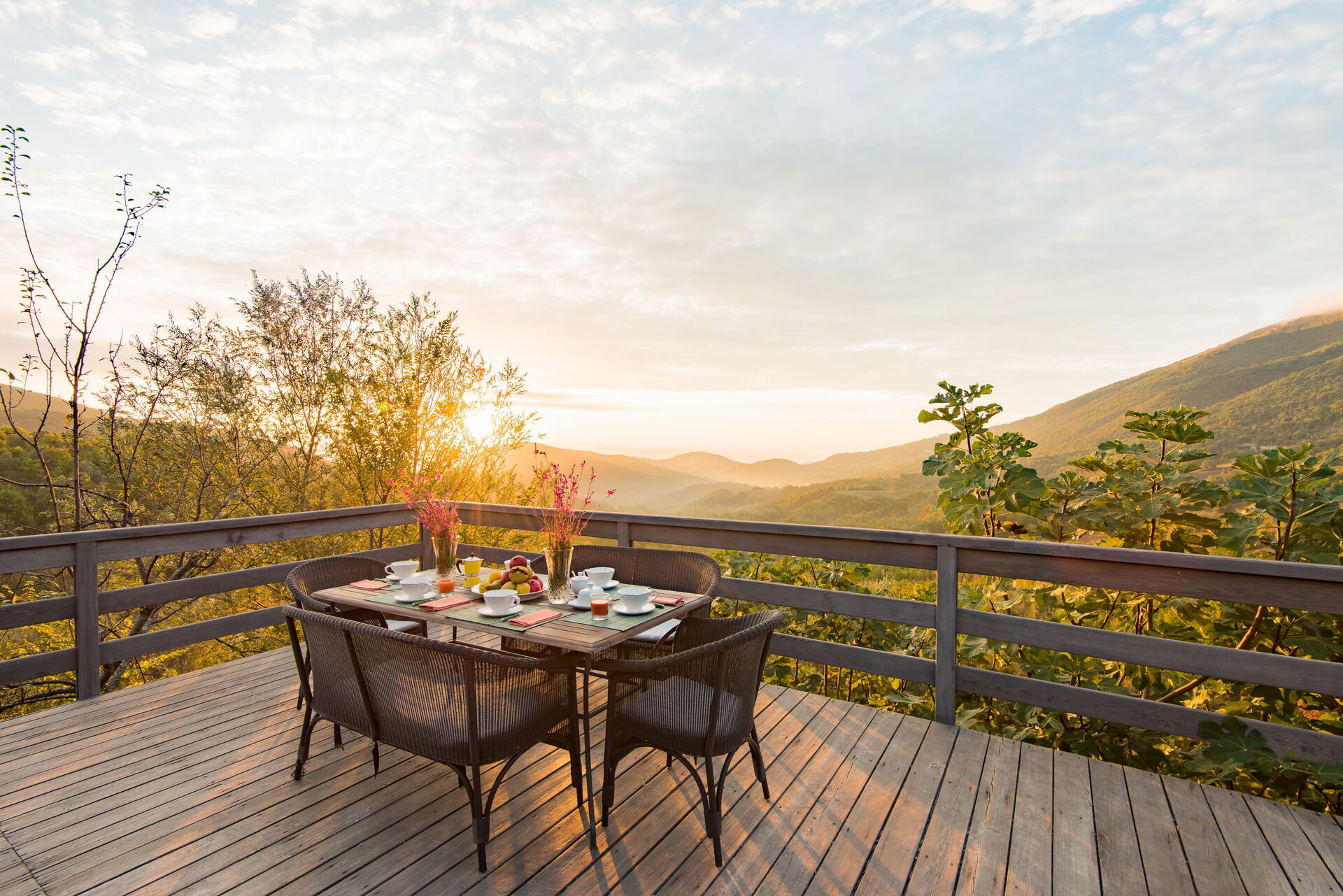 The terrace in front of the living room provides an elegant setting, with sofas and a welcoming table for 8 people. Barbecue enthusiasts will have a dedicated area. Upon request, ping pong matches can be arranged.