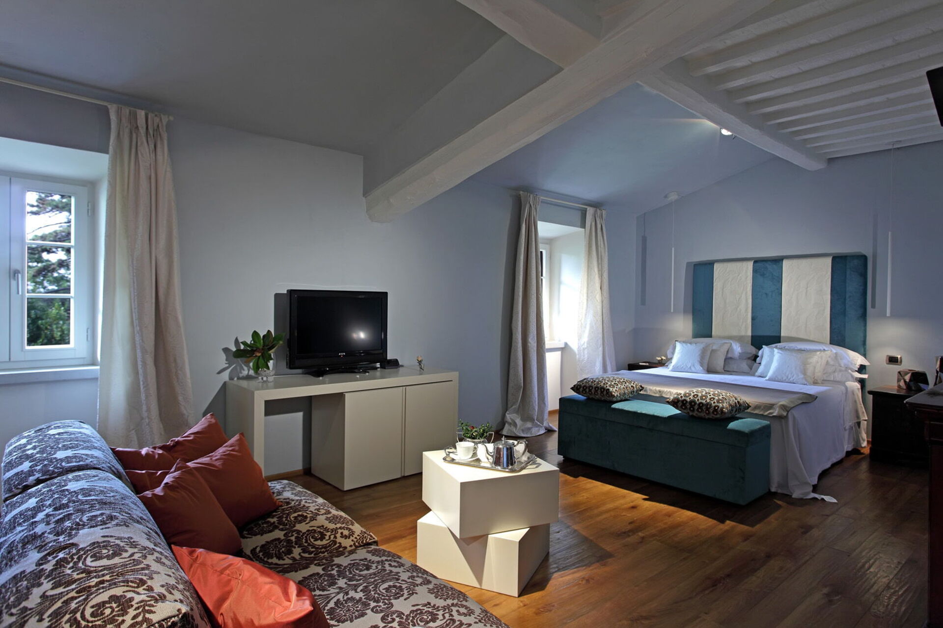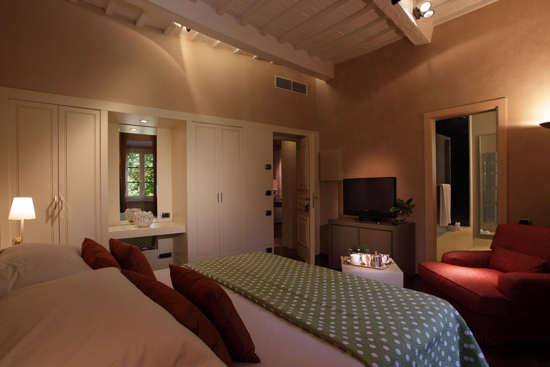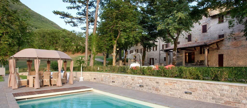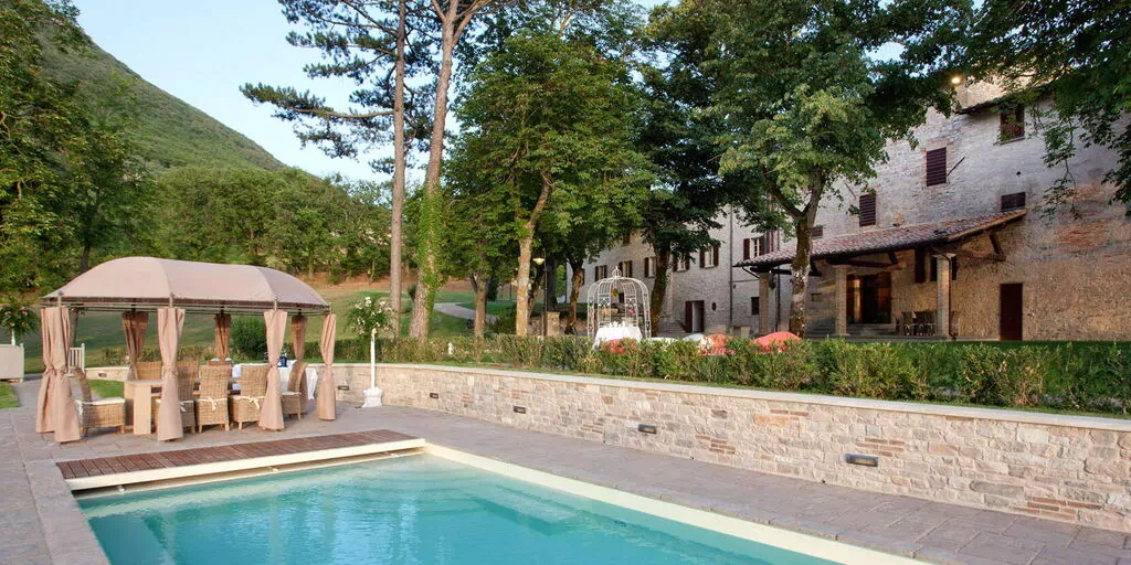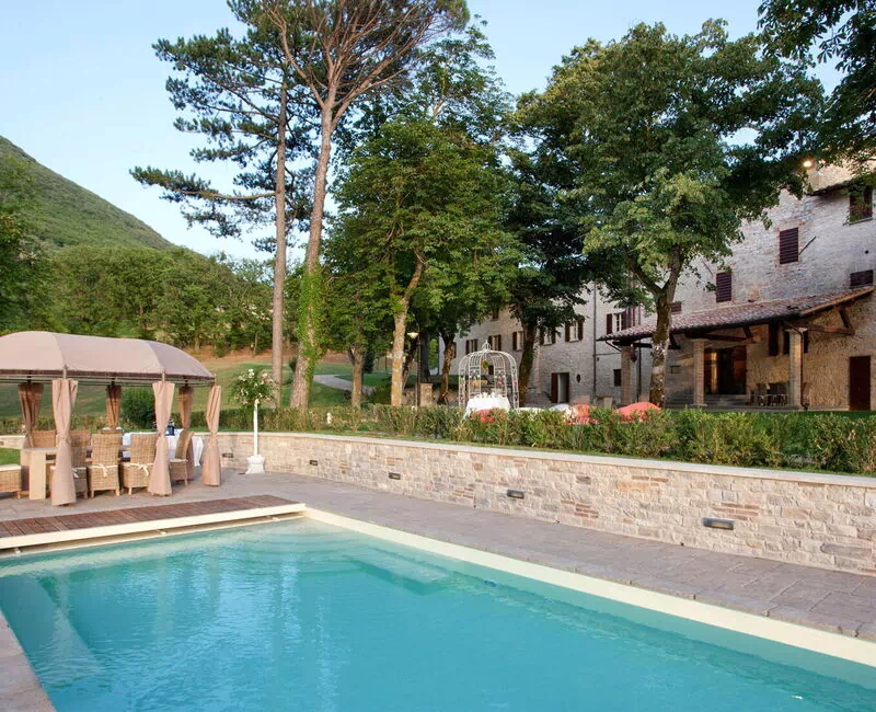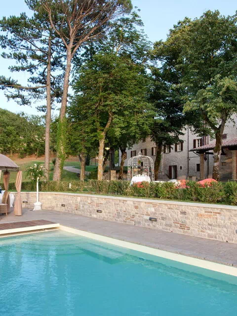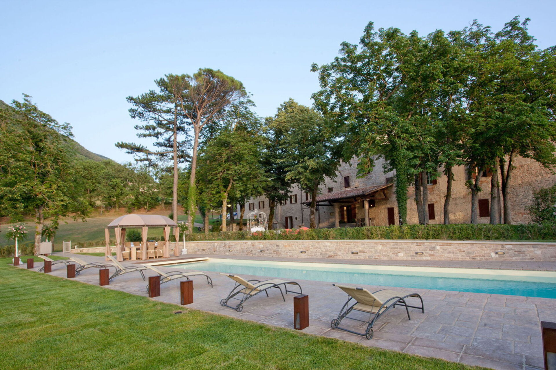 Villa Pietraverde is a charming and luxurious period residence with private swimming pool with hydromassage corner (4.50x17 m, depth 0.60-1.50 m), immersed in the rolling hills of the Umbrian countryside, a few kilometers from the beautiful medieval city of Gubbio. The villa dates back to the end of the 18th century and has been finely restored. The house is surrounded by a lush centuries-old park, terraces equipped for relaxation and with barbecue for outdoor dining with views of the countryside and the hills. The strategic position of the villa makes it an ideal starting point for exploring the surrounding beauties, including the cities of Assisi, Città di Castello, Spello, Todi, Perugia and Lake Trasimeno in Umbria, as well as Cortona and Arezzo in Tuscany, and Urbino with the Frasassi caves in the Marche. A perfect destination for those seeking a stay of luxury, history, art and scenic beauty in green Umbria. Possibility to book only 14 sleeps at a reduced price, closing 3 bedrooms and 4 bathrooms.