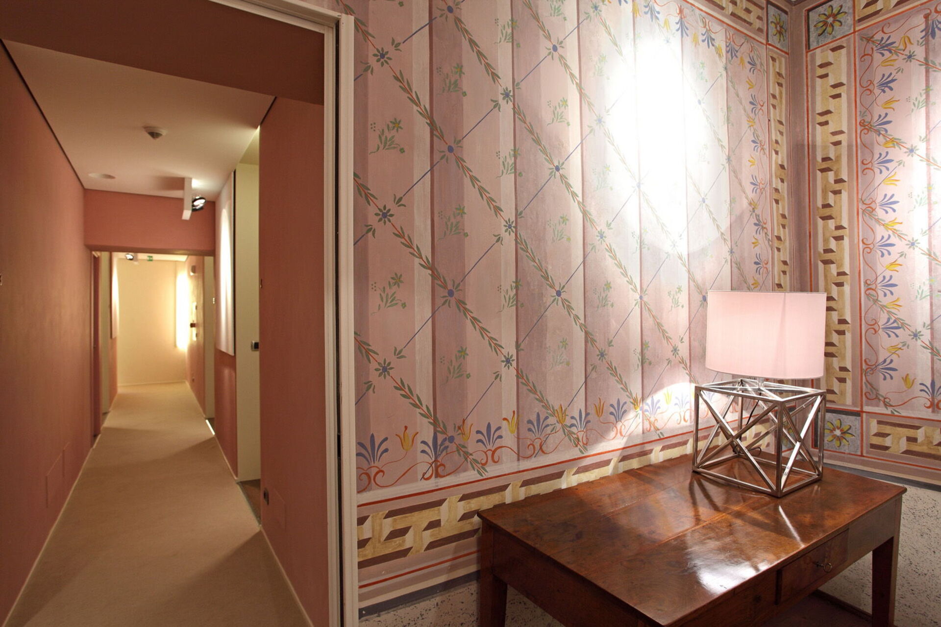 Ground Floor: entrance, dining room, TV room, reading room, living room, kitchen, 1 bathroom with shower. First Floor: kitchenette, living room, 6 double bedrooms with bathroom with bathtub, 1 double bedroom with bathroom with bathtub and shower, 1 double bedroom with bathroom with shower, 1 bedroom with French bed (140x190 cm) with bathroom with bathtub, 1 twin/double room with bathroom with shower.