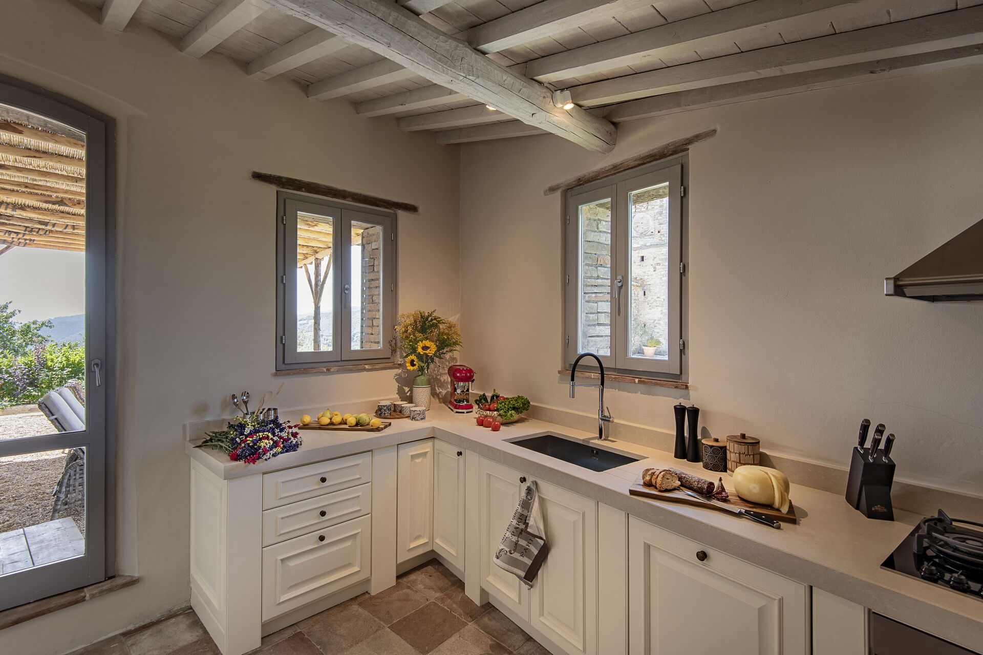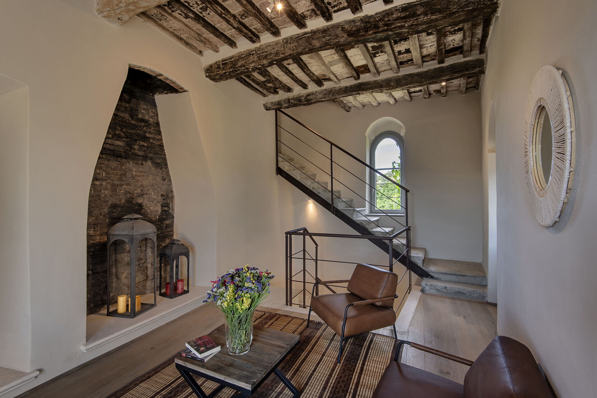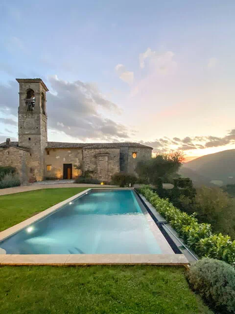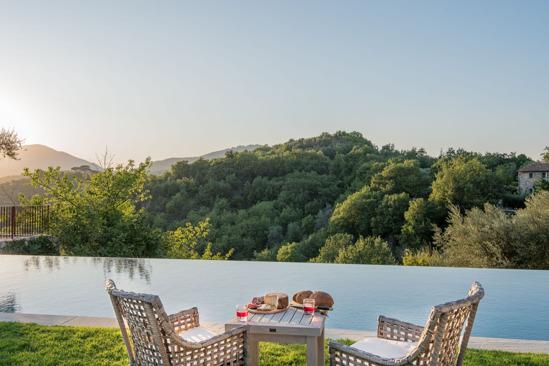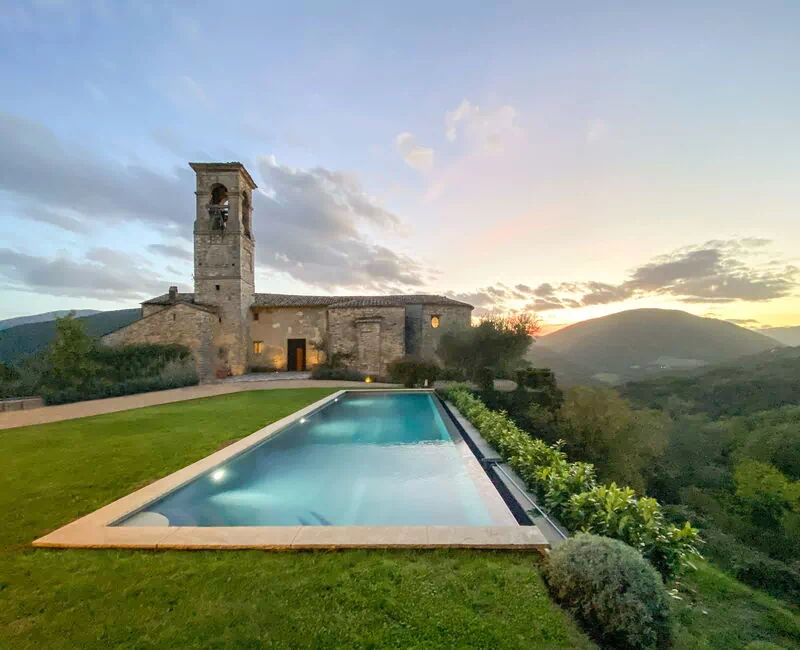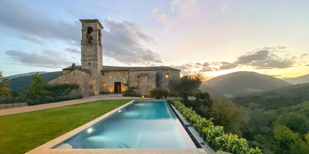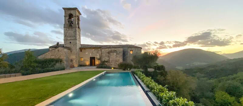 Positioned on top of a hill, this ancient castle with a church dating back to the 11th century offers a breathtaking panoramic view of the Tiber valley. A skilful renovation has transformed this place into a wonderful villa with a private infinity pool that blends harmoniously with its surroundings.
